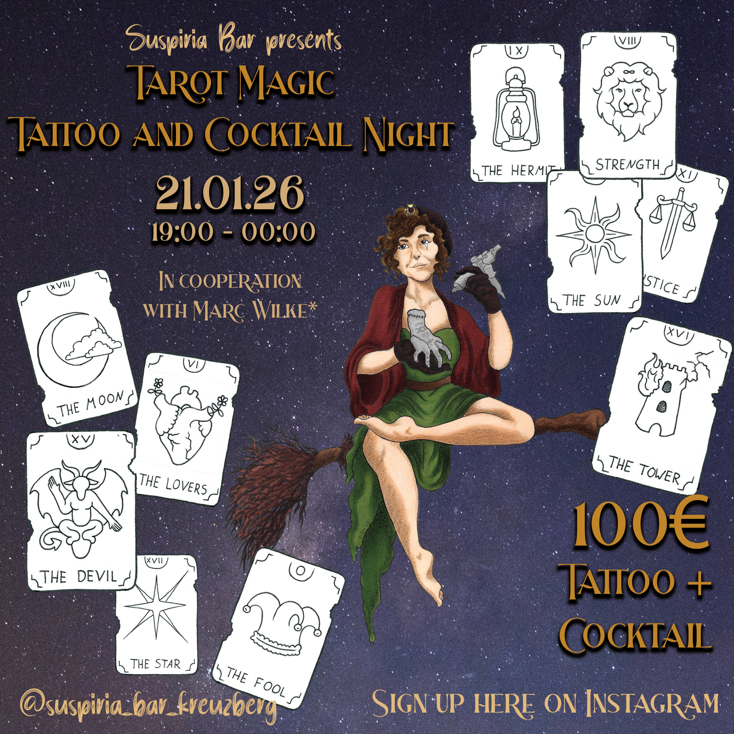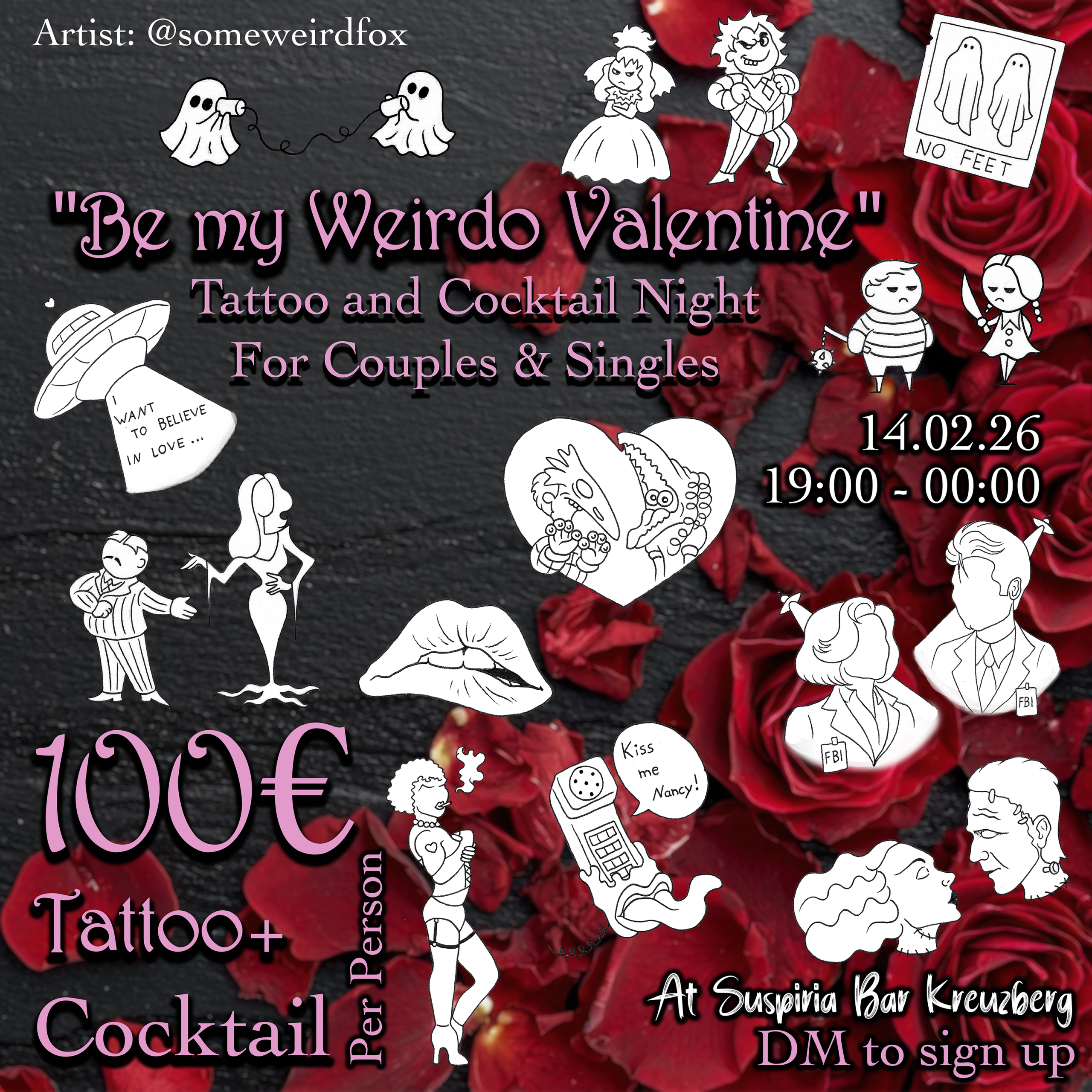 Please (if possibvle) send a DM to @someweirdfox or @suspiria_bar_kreuzberg to sign up and be put on the priority list for the tattooing. That way we can ensure that nobody leaves the bar uninked 🫀