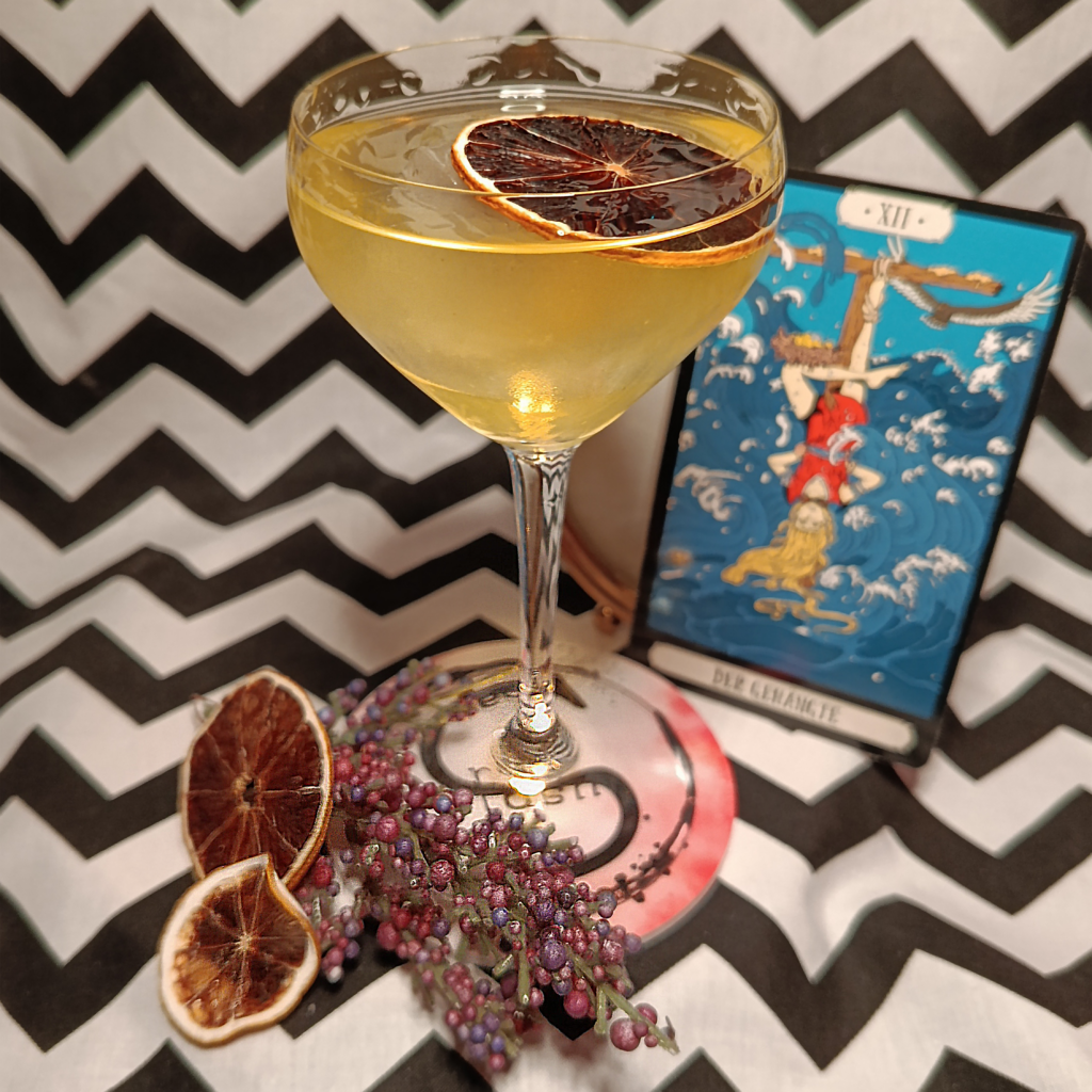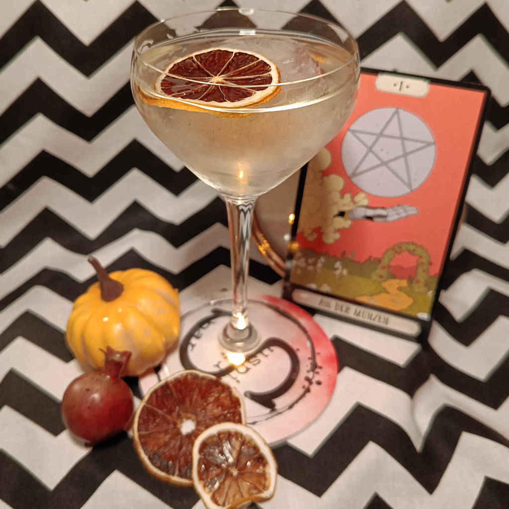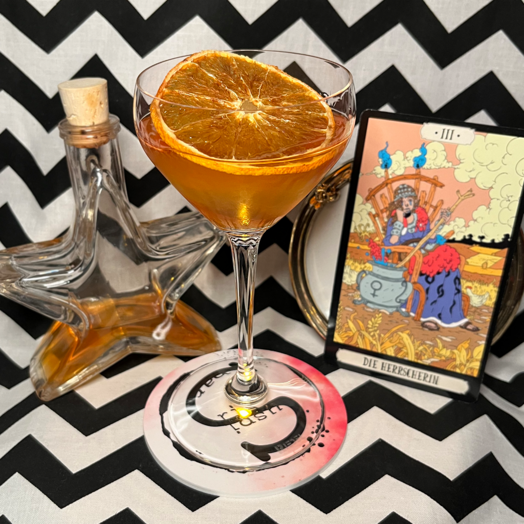 Ingredients: mix of 2 london dry gins, Mandragora psychedelic liqueur, Catuma euphoric liqueur, Angostura bitter, fresh orange squeeze, served with homemade dehydrated orange slice