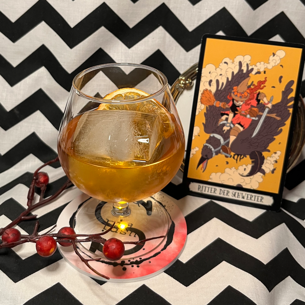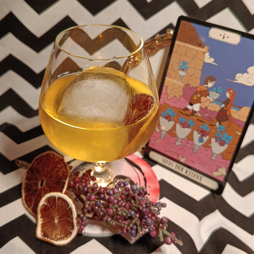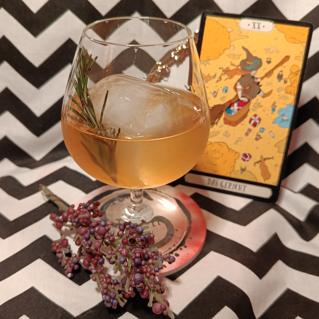 Ingredients: mix of 2 london dry gins, Mandragora psychedelic liqueur, Catuma euphoric liqueur, Angostura bitter, fresh orange squeeze, served with homemade dehydrated orange slice