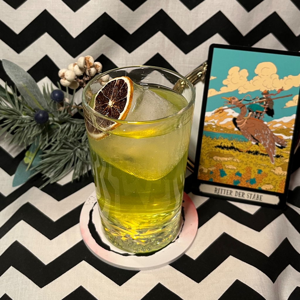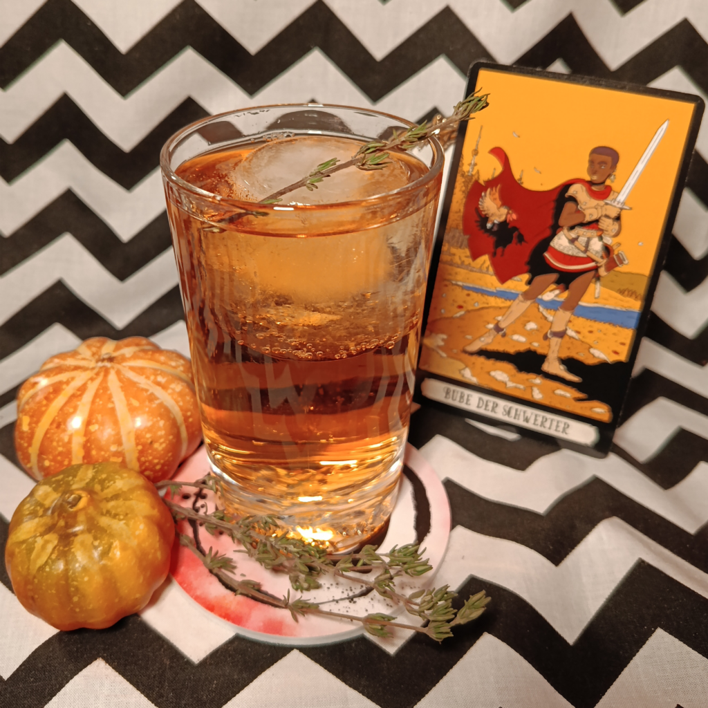 Ingredients: Pisco Malpaso Reservado, Thym thyme liqueur, Club Mate, Angostura bitter, served with a fresh thyme twig