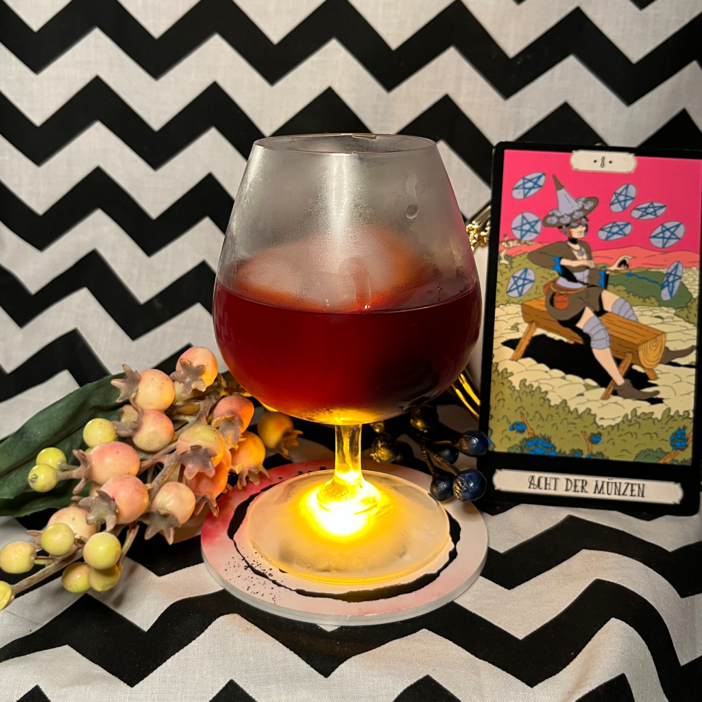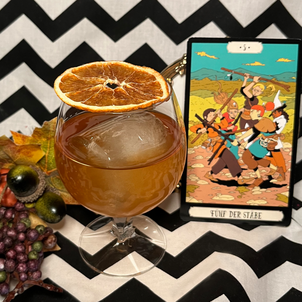 Ingredients: Ginsanity White Truffle gin, Quinta do Vallado Tawny Port Reserva, Cynar amaro, Bitter Truth Piment Dram allspice liqueur, Luxardo Maraschino Original liqueur, fresh orange squeeze, served with a maraschino cherry