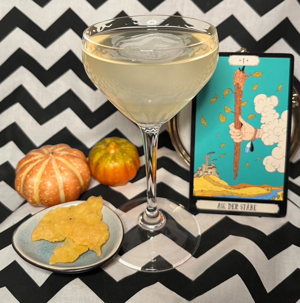 Ingredients: homemade parmesan infused vodka, Choya sake, Democrata espadin mezcal, homemade acacia honey liqueur, served with a dehydrated cheddar chip