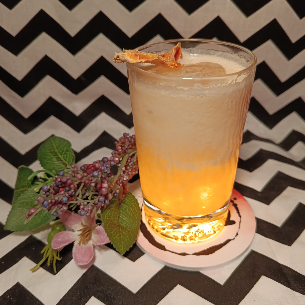 Ingredients: milky coconut rum liqueur, Jamaican rum, Rudy’s Pineapple & Coconut Kombucha, served with a dehydrated pineapple