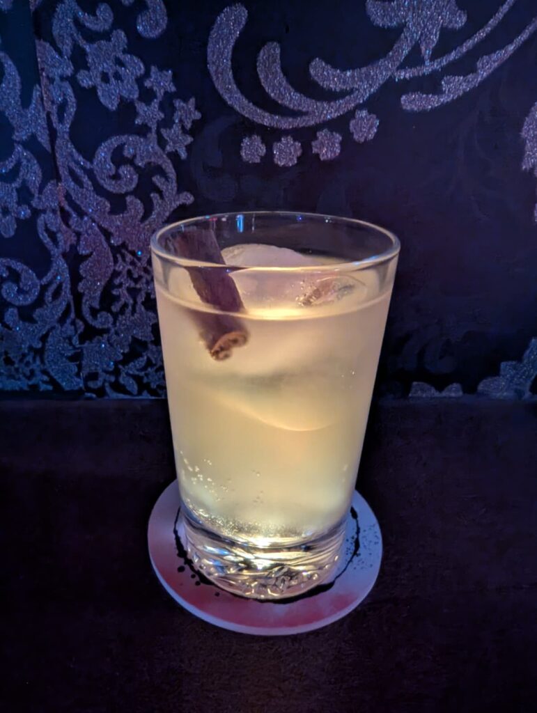 Ingredients: Rudy’s Passion Fruit Hard Kombucha, butterscotch liqueur, mace-infused gin, served with a cinnamon stick