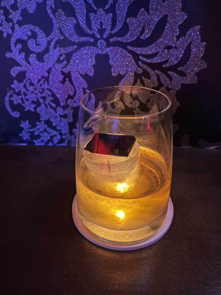 Ingredients: Rammstein rum, Plantation Original Dark rum, Razel’s Peanut Butter Rum liqueur, Razel’s Brownie rum liqueur, Angostura bitter, Creole bitter, Chocolate bitter, all milk washed, served with a piece of dark chocolate